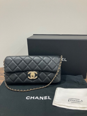 東京都港区在住のお客様から、シャネル カンボンライン ラムスキン チェーンウォレット ブラック シルバー金具をお持ち込みいただきました。数回使用のみの美品で、珍しいブラック内装仕様という希少性も評価され、ウィンクル銀座店が相場を上回る20万円で高価買取を実現しました。銀座エリアで信頼と実績を誇る専門店ならではの丁寧な査定対応が特徴です。