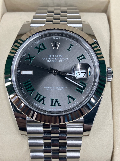 東京都港区在住のお客様より、ロレックス デイトジャスト AT スレート文字盤をウィンクル銀座店にてお売りいただきました。未使用品かつ保証書が最新日付という点に加え、ジュビリーブレスと落ち着いたスレート文字盤が高く評価され、相場以上の買取価格となりました。専門知識を持つ査定士による安心感のある対応も評価いただいた買取事例です。