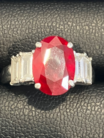 大阪市淀川区のお客様よりお持ち込みいただいた「ルビーダイヤリング Pt900 4.35/D1.29」を、ウィンクル難波店が丁寧に査定し60万円で高価買取いたしました。大粒4.35ctのルビーの色の美しさと、1.29ctのダイヤ取り巻きデザインを最大限に評価。相場を大きく上回る高額査定となった事例です。