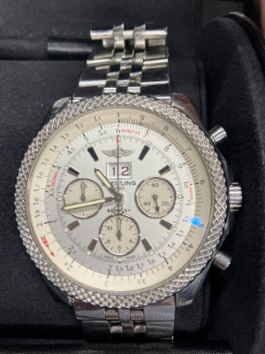埼玉県八潮市にお住まいのお客様から、ブライトリング ベントレー A444G79SP 白文字盤をお持ち込みいただきました。人気の白文字盤モデルで、箱やギャランティなど付属品も揃っていたため、相場30~35万円を上回る40万円での査定を実現。ウィンクル銀座店は銀座エリアで実績豊富な鑑定士が常駐し、安心して高額査定をお任せいただける店舗です。