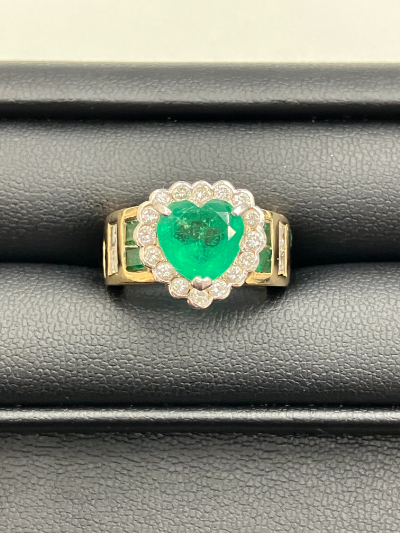 東京都新宿区在住のお客様から、エメラルドダイヤリングをお持ち込みいただきました。ハート型にカットされたエメラルドと色味の良さ、デザイン性の高さが評価され、一般的な買取相場を超える高価買取が実現しました。宝石の価値をしっかり見極める査定により、ノーブランドであっても納得の価格をご提示できた買取実績です。