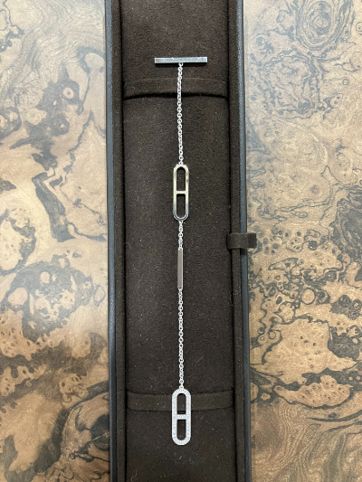 東京都大田区にお住まいのお客様より、エルメス シェーヌダンクルGM ブレスレット14コマをウィンクル銀座店でご売却いただきました。シルバー925特有の使用感は見られましたが、打痕などの大きな傷が無かったため高く評価でき、22万円での買取となりました。エルメスの中でも特に人気の高いモデルで、需要の高さも相まって相場以上の価格でのご案内が実現しました。ブランドや宝飾品の価値を丁寧に見極める査定士が常駐し、安心してご利用いただける環境で対応しています。