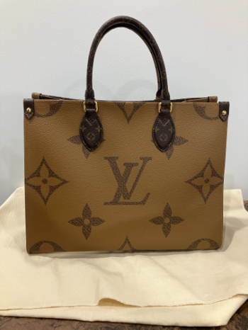 千葉県千葉市花見川区のお客様より、ルイヴィトン ジャイアントモノグラムリバース オンザゴーMM M45321をお売りいただきました。人気のシリーズであり、レザー素材の状態も非常に良く、付属品も揃っていたため、相場を超える25万円の高価買取を実現。地域密着のウィンクル千葉店が、専門知識と丁寧な接客で安心査定を提供しました。