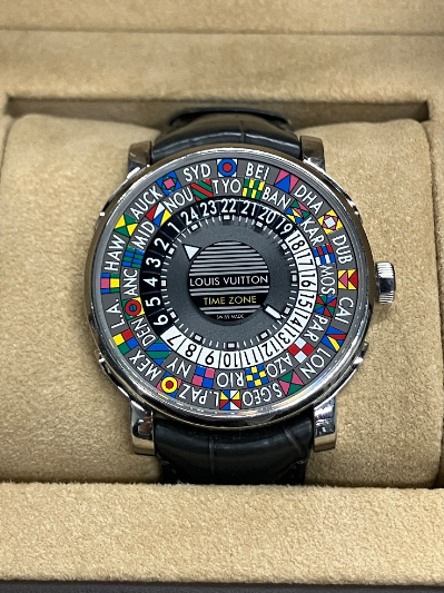 東京都品川区在住のお客様から、ルイヴィトン エスカル オートマティック タイムゾーン Q5D20をウィンクル銀座店にてお買取りしました。使用感の少ない美品で、箱や保証書など付属品もすべて揃っていたことから、一般的な相場を上回る査定額となりました。高級時計の価値を熟知した査定士が丁寧に対応し、安心してご売却いただけた買取事例です。