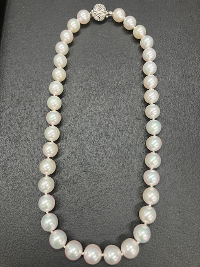 大阪府大阪市のお客様から、特別呼称がついた「オーロラ天女」パールネックレス(約10.0~10.5mm珠)をウィンクル難波店でお買取りしました。鑑別書付きで品質・サイズともに非常に優れており、相場を超える10万円での高価査定を実現しました。難波という国際的なエリアで、海外バイヤー需要にも対応できる販路を持つ当店ならではの評価です。真珠の価値を正しく見極め、丁寧に査定いたしました。