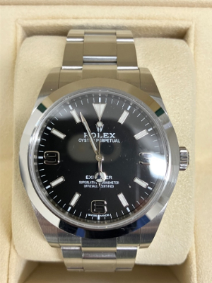 奈良県奈良市のお客様より、ロレックス エクスプローラーⅠ 214270(黒文字盤)をウィンクル難波店にてご売却いただきました。商品はステンレススチール製の定番人気モデルで、付属品(箱・保証書)も揃った美品コンディション。難波店独自の販売チャネルと高い販路力を活かし、相場(94〜99万円)を上回る105万円での高価買取を実現しました。