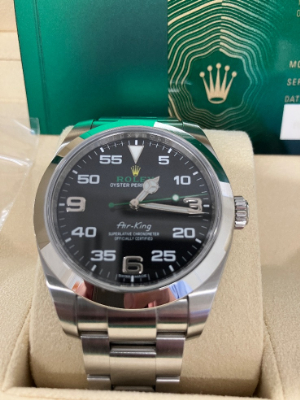 大阪府門真市のお客様より、ロレックス エアキング 116900(SS AT)をウィンクル難波店にてご売却いただきました。人気の定番モデルでありながら、商品ランクはB。ですが、付属品の完備と販路の広さを活かし、相場を上回る90万円で高価査定を実現しました。信頼できる対応にもご評価をいただいています。