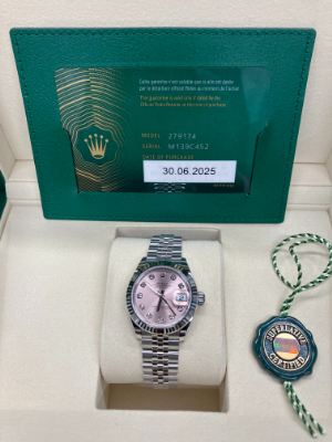 神奈川県横浜市にお住まいのお客様から、ロレックス デイトジャスト 279174をウィンクル銀座店にてご売却いただきました。新品同様のNランク品で、女性に人気のピンク文字盤仕様が評価され、相場を超える185万円での買取を実現しました。銀座エリアでも豊富な実績を持つウィンクル銀座店のベテラン鑑定士が査定を担当し、比較された中でも最高値を提示。安心と信頼の査定を体験していただけました。
