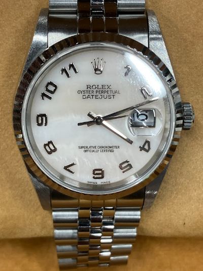 ロレックス デイトジャスト AT スレート文字盤の買取については、安定したお問い合わせがあります。今回のお品は型番126334で、ステンレススチールにホワイトゴールドベゼルを組み合わせた素材構成が特徴です。スレート文字盤は主張しすぎない上品さがあり、ビジネスシーンでも使いやすい点が魅力です。さらにジュビリーブレスはしなやかな装着感と高級感を両立しており、長時間の着用でも快適さを保ちます。こうした実用性と資産性を兼ね備えたモデルは中古市場でも需要が高く、ロレックス デイトジャスト AT スレート文字盤の買取では状態や付属品の条件次第で高額査定が期待できます。