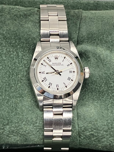 東京都港区在住のお客様より、ロレックス オイスターパーペチュアル 67180 SS AT 白文字盤をウィンクル銀座店で買取させていただいた事例です。全体的に使用感の少ない美品で、保証書などの付属品が揃っていた点を高く評価し、一般的な相場を上回る査定額となりました。銀座という立地を活かし、高額商品の査定に慣れた鑑定士が丁寧に対応したことで、安心してお取引いただけた買取実績です。