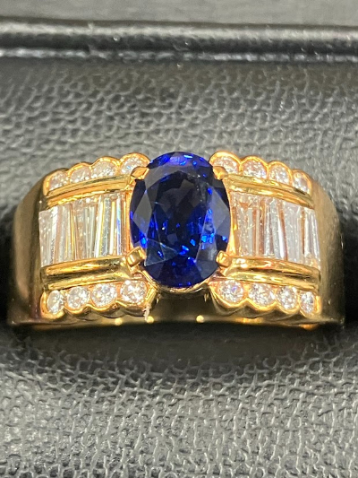 今回査定を担当いたしました。私はこれまで数多くの宝石買取に携わってきましたが、本品のように色味のバランスが整ったサファイアは決して多くはありません。査定の際は、まず自然光と専用ライトの両方で色の出方を確認し、透明度や内包物の位置まで丁寧にチェックします。今回のサファイアは、濃さと明るさのバランスが非常に優れており、周囲のダイヤモンドとの調和も素晴らしいと感じました。お客様にも評価基準をしっかりご説明し、ご納得いただいたうえでお取引が成立しました。単に価格を提示するだけでなく、なぜその金額になるのかを分かりやすくお伝えすることを常に心がけています。