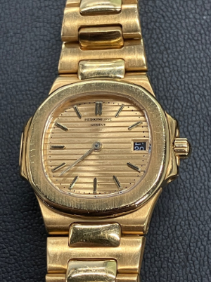 東京都中央区のお客様より、パテックフィリップ ノーチラス 4700/1J 750YG QZ シャンパン文字盤をお持ち込みいただきました。高級時計の中でも人気の高いノーチラスで、さらにレディースモデルという希少性が加わり、Bランクながらも動作良好で付属品も揃ったことで、相場200〜220万円を上回る240万円の査定額となりました。銀座での豊富な実績を持つ当店なら、安心して時計をお任せいただけます。