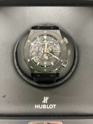 京都府京都市在住のお客様から、ウブロ クラシックフュージョン アエロフュージョン 525.CM.0170.LRをご売却いただきました。ABランクながら非常に美品で付属品も完備しており、一般的な相場80〜85万円を超える90万円での高価買取を実現。難波の立地特性を活かし、外国人バイヤー向け販路を背景に相場以上で評価できる点がウィンクル難波店ならではの強みです。