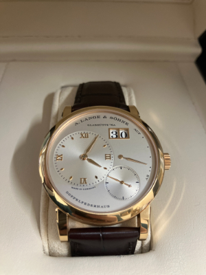 大阪府八尾市にお住まいのお客様から、ランゲアンドゾーネ ランゲ1(Ref.191.032)をウィンクル梅田店にてお売りいただきました。ピンクゴールドケースの高級時計であり、付属品が揃った美品だったため、相場を超える345万円での買取が成立しました。ラグジュアリーウォッチに強い梅田店ならではの高額査定事例です。