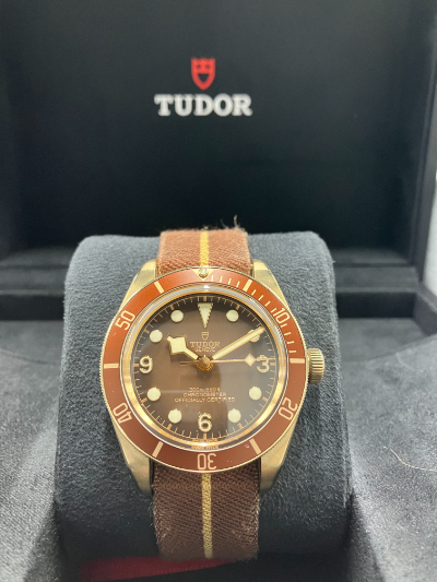 富山県富山市のお客様からチュードル ブラックベイ ブロンズ 79012Mをウィンクル宅配にて査定・買取しました。ブロンズ素材の希少性と美品状態、さらに付属品完備という条件が重なり、一般相場を超える40万円の査定額を提示することができました。全国どこからでも利用可能な宅配買取サービスとして、多くの方に信頼いただいています。