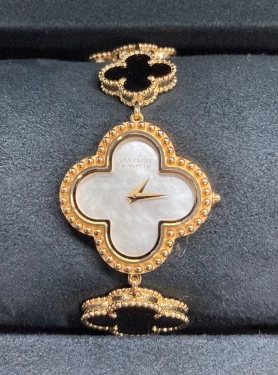 東京都世田谷区からご来店いただいたお客様より、ヴァンクリーフ&アーペル アルハンブラ VCARO40P00時計をウィンクル銀座店にて買取いたしました。一般相場120~150万円に対し、付属品完備かつシェル部分も傷がない美品であったため、160万円の高額査定を実現しました。銀座という立地にふさわしい個室査定と豊富な実績を活かし、お客様に安心してご満足いただける取引をご提供しています。