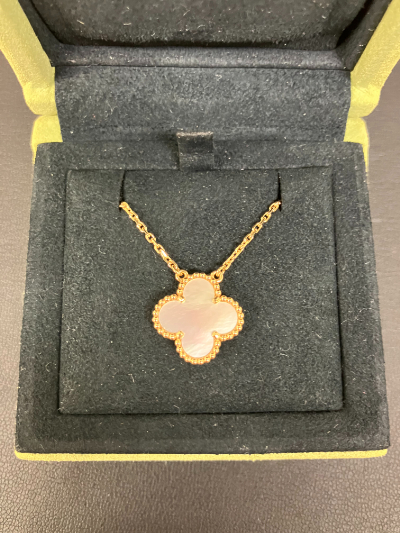 東京都港区のお客様よりお持ち込みいただいたヴァンクリーフ&アーペル ヴィンテージアルハンブラ グレーシェル ネックレスを、ウィンクル銀座店で31万円にて高価買取いたしました。相場は26〜28万円でしたが、使用感の少なさや付属品の完備、ブランド人気の高さから査定額は上乗せとなりました。柔らかな輝きを放つグレーシェルとピンクゴールドの組み合わせが特徴的で、中古市場でも安定した需要を誇ります。銀座という立地で培った豊富な実績と専門知識を活かし、お客様に安心感のあるお取引をご提供しました。